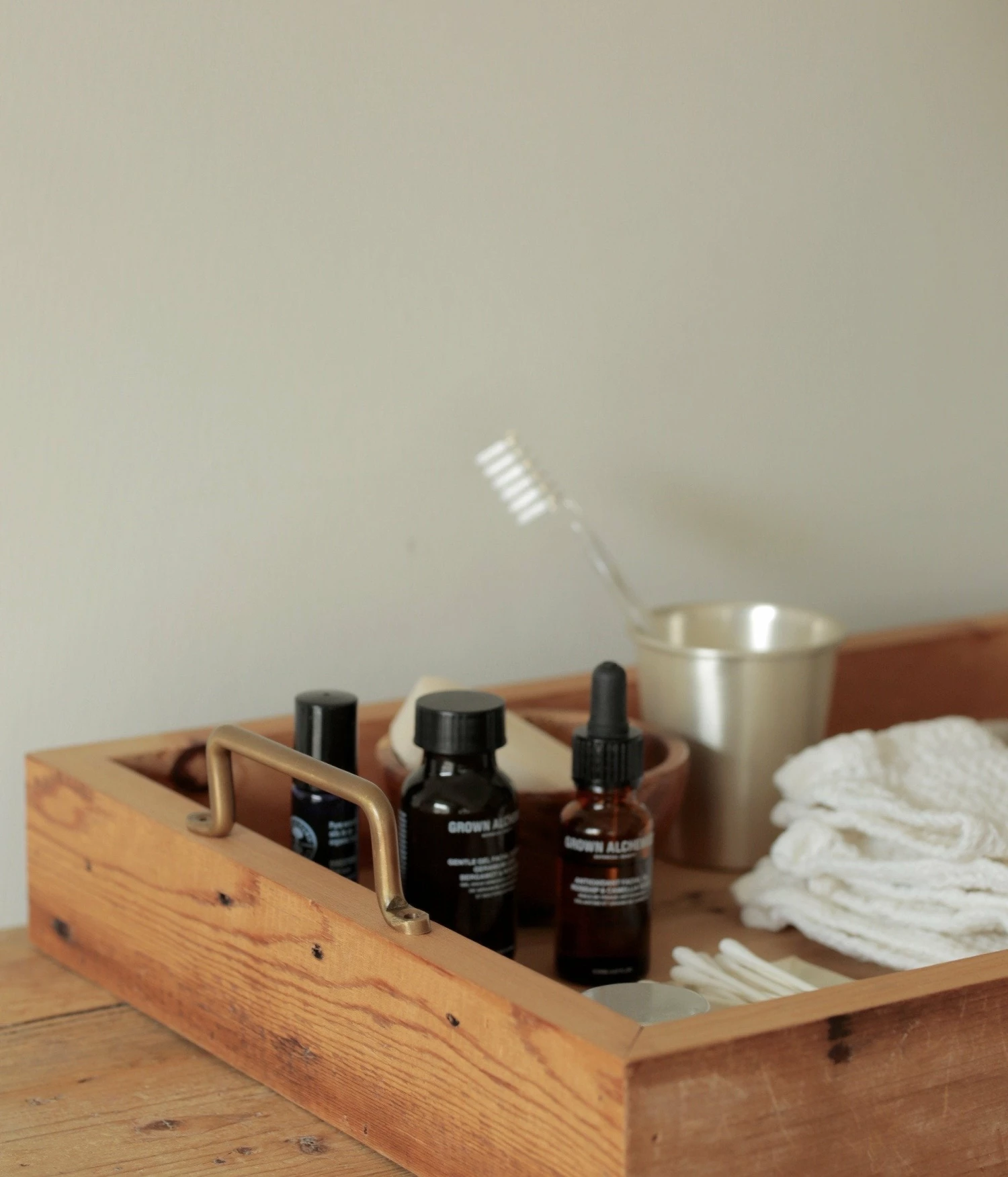 Simple, hand-made handle of warm, antiqued brass.