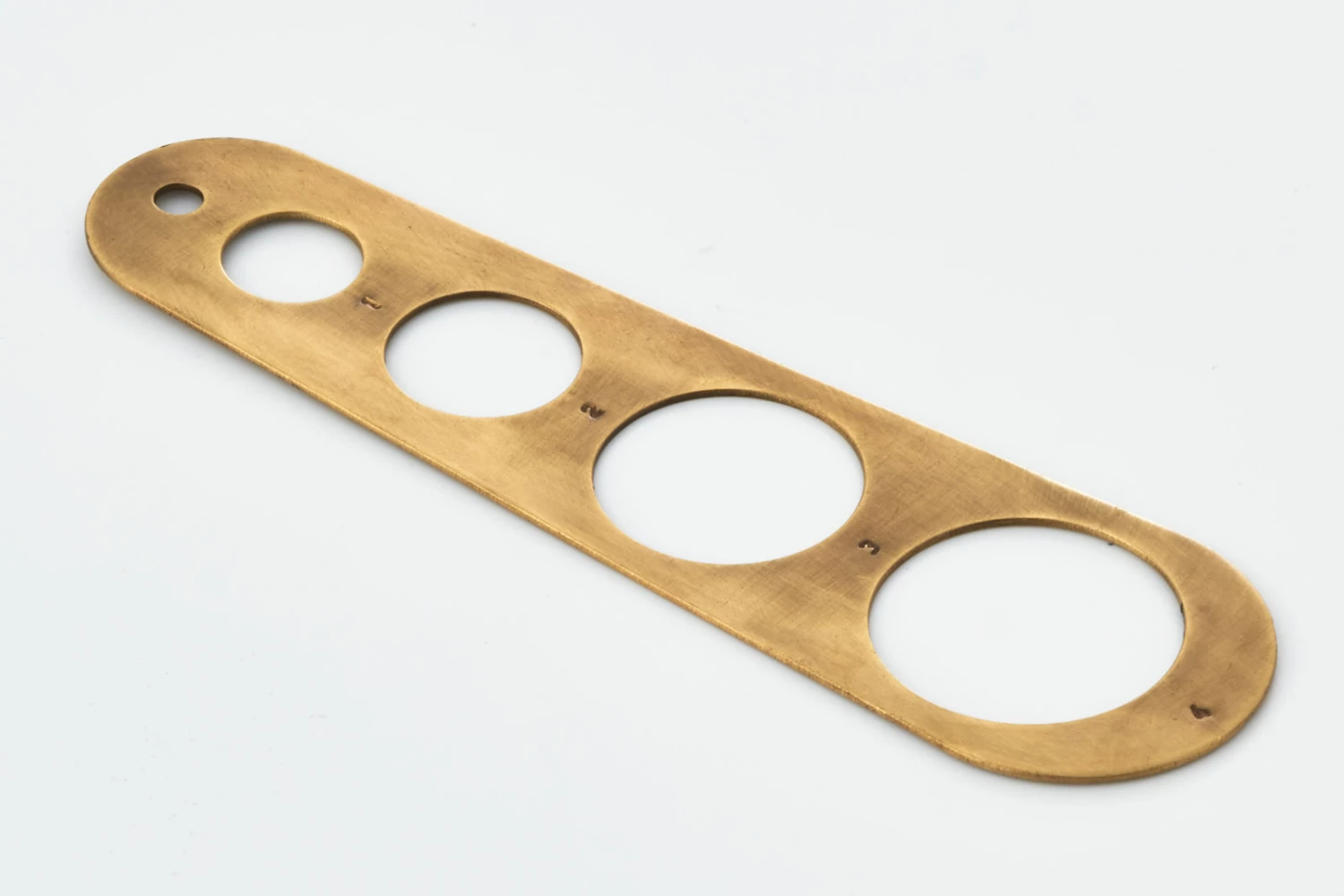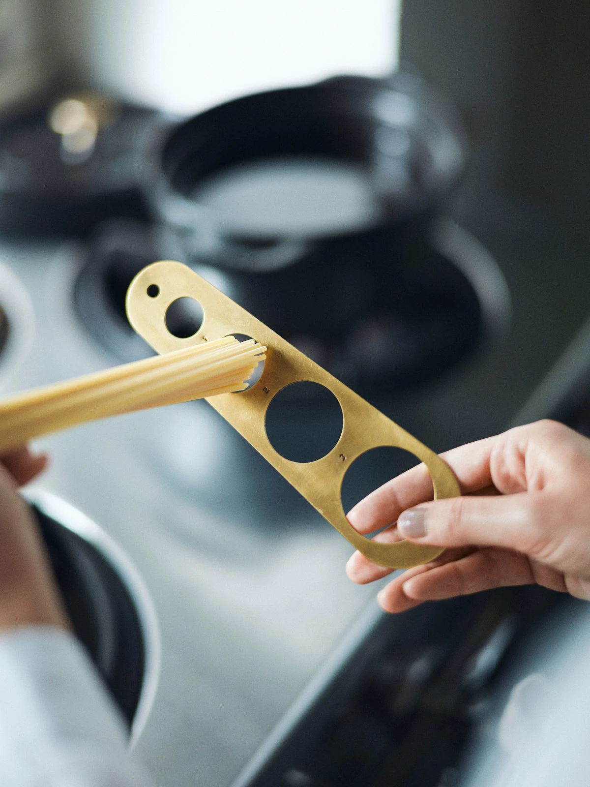 This beautiful Brass Pasta Measure has four different measuring holes to identify the correct amount of spaghetti for 1-4 servings.