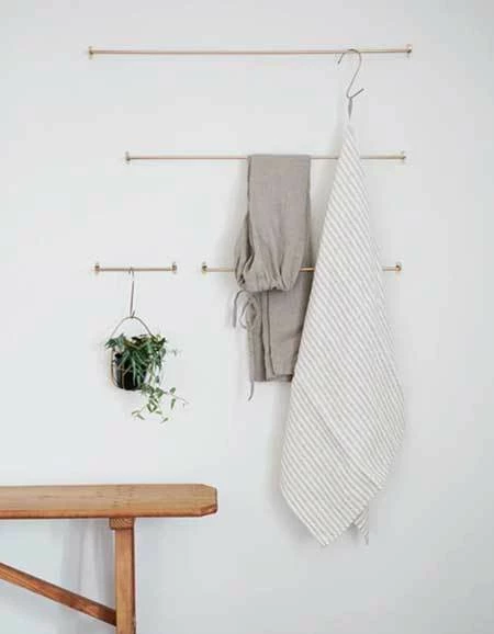 Simple, hand-made towel bar of warm, antiqued brass.