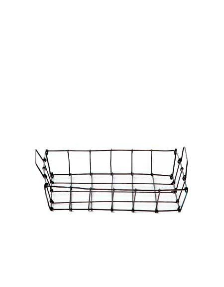 A series of baskets made of thin black wire.