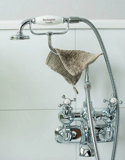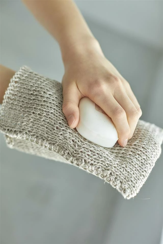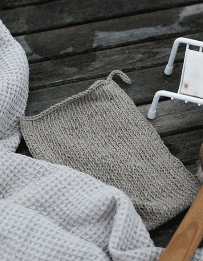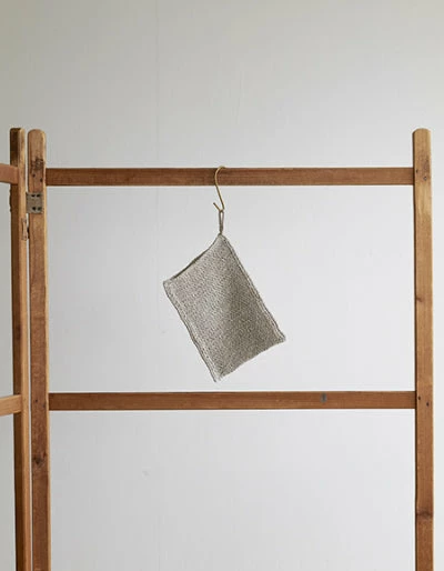 Hand-knit linen wash cloth for gently exfoliation. Did you know that linen has natural anti-bacterial properties? It’s true. Loop for easy hang dry.