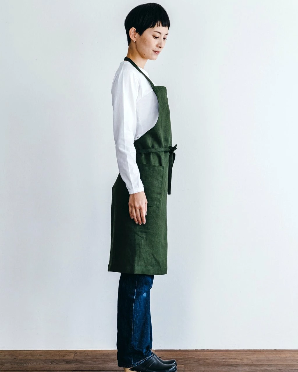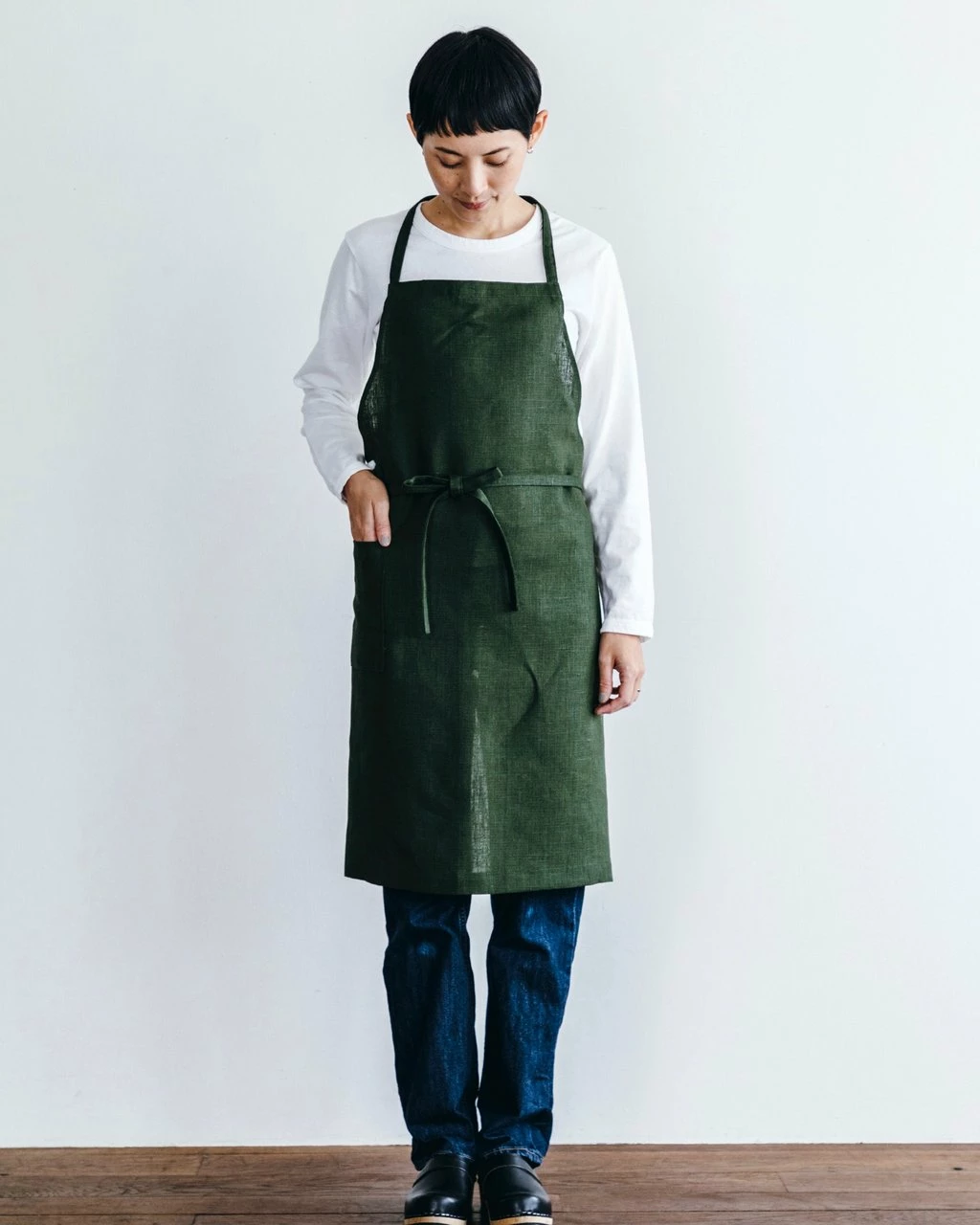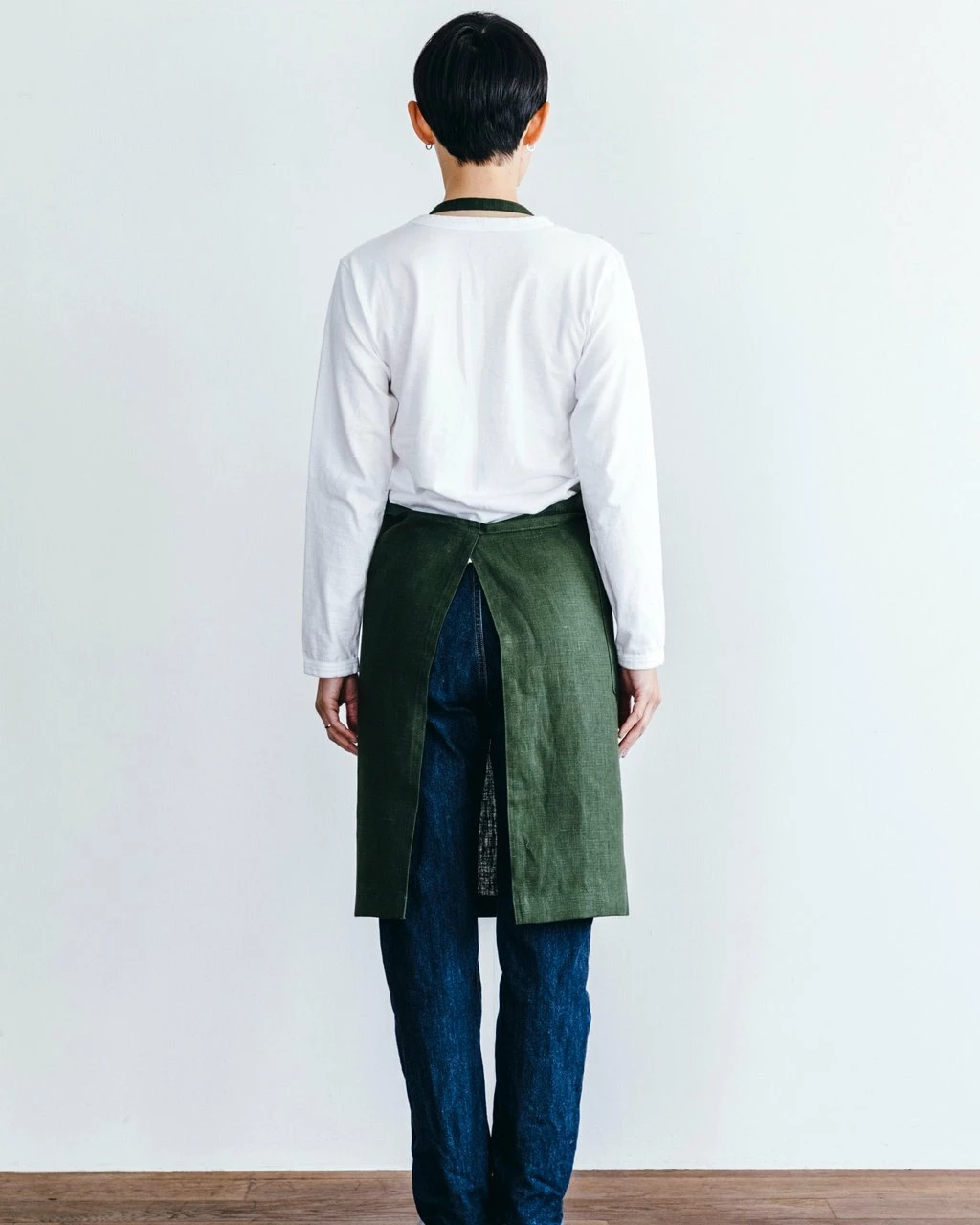 A little shorter than our full apron, the daily also provides full coverage with its classic bib style. Functional and long-lasting, one handy pocket is placed in front for tools, utensils, and, of course, tired hands.