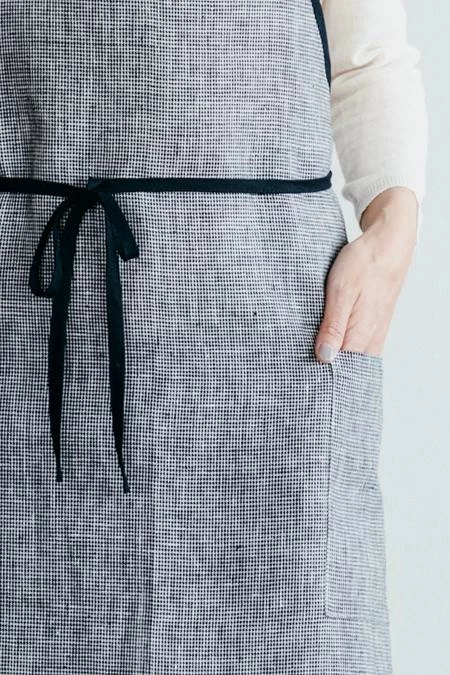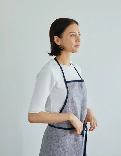 A classic and handsome apron with a black piping detail. Functional and long-lasting.
