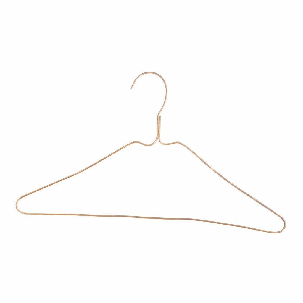 Hand-wrought brass hanger to accommodate lighter items like shirts and dresses.