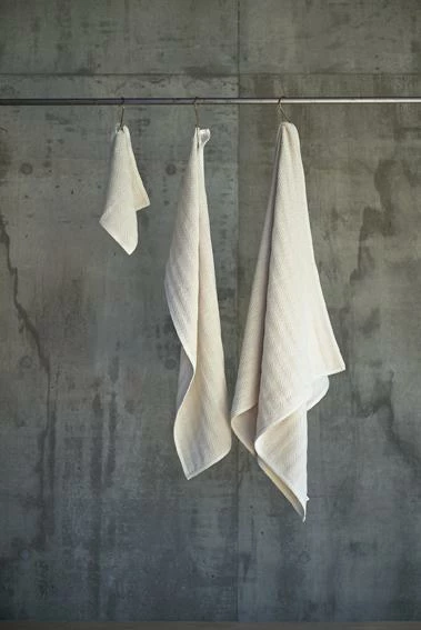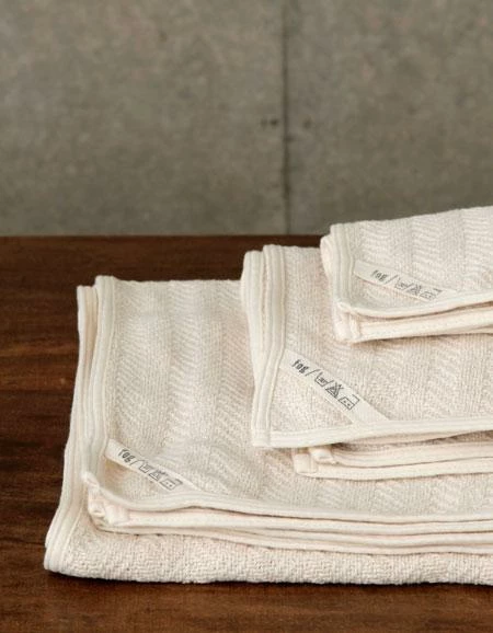 Super-soft and absorbent cotton bath towels woven in a herringbone pattern.